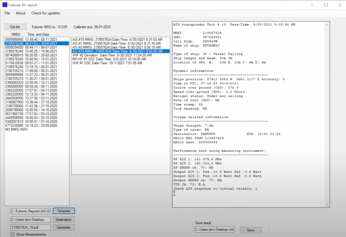 Futronic MKII provides a complete set of test results aligned with the survey reports for faster reporting. EPIRB and AIS reports are generated automatically by the PC software. Ready for sign-off. The PC software is always updated in relation to the latest IMO requirements and is always available to download here.